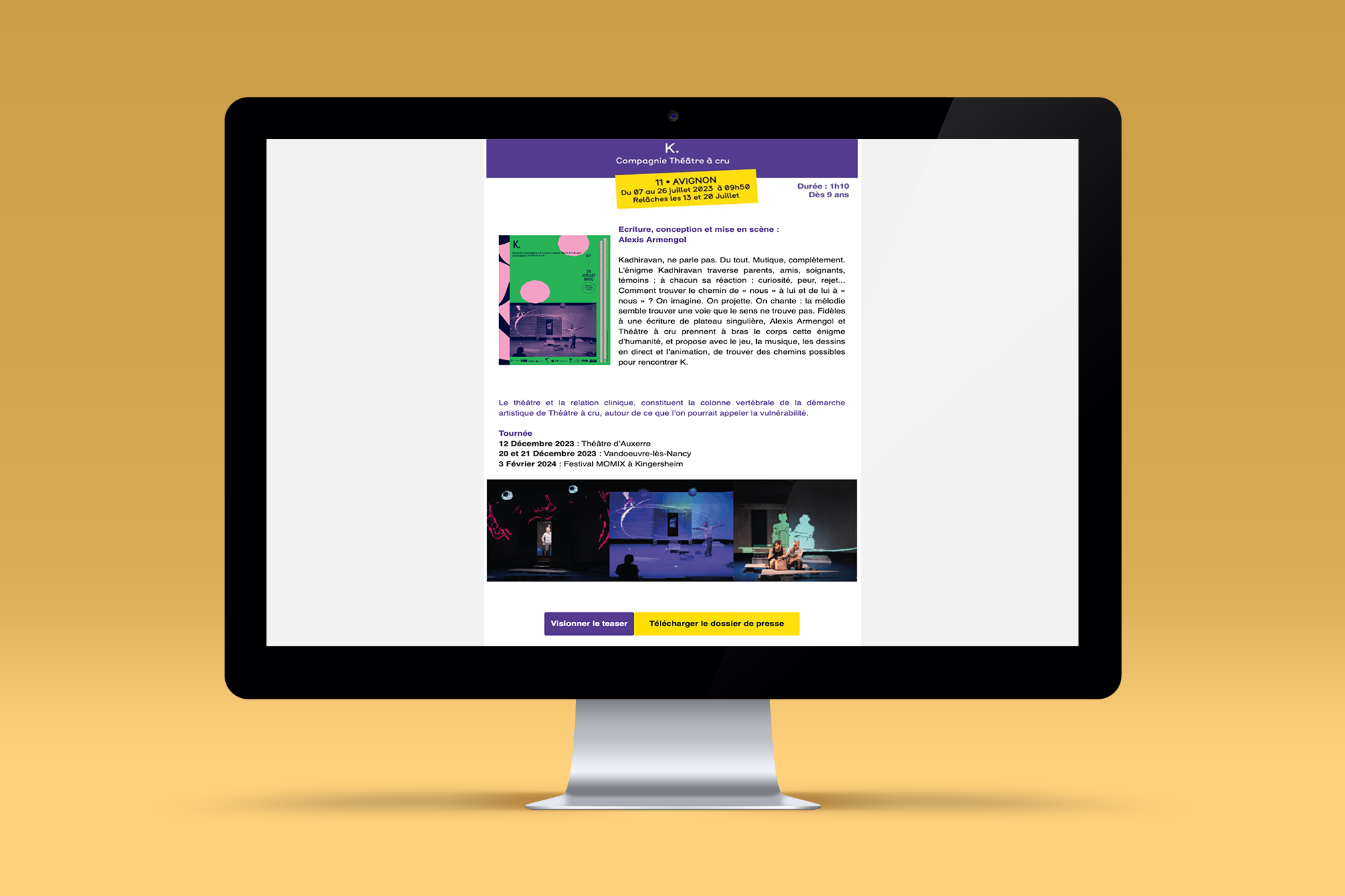 Pour chaque spectacle présenté dans la newsletter, création de liens renvoyant sur le teaser vidéo du spectacle ainsi que sur le dossier de presse complet.