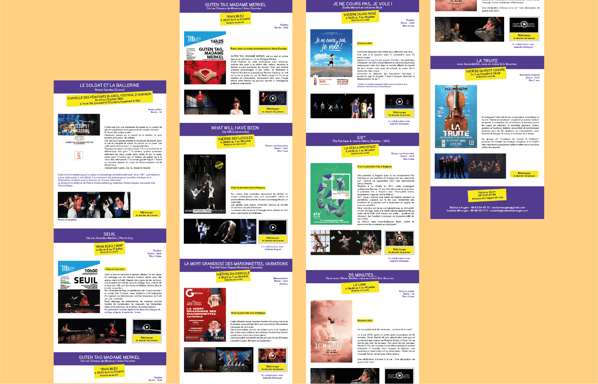 Newsletter interactive pour une attachée de presse (F. Uhart) Festival d’Avignon 2022 et 2023