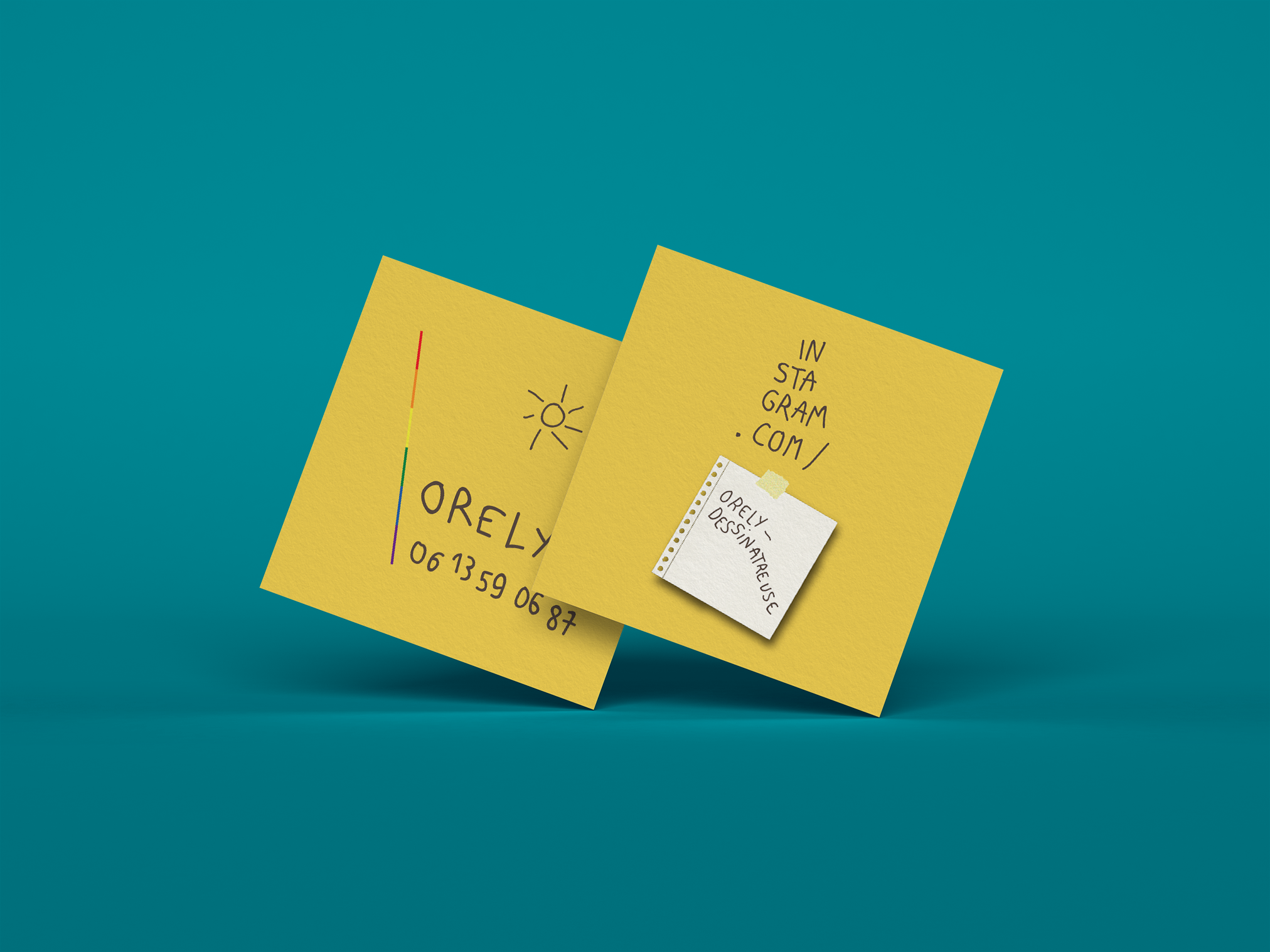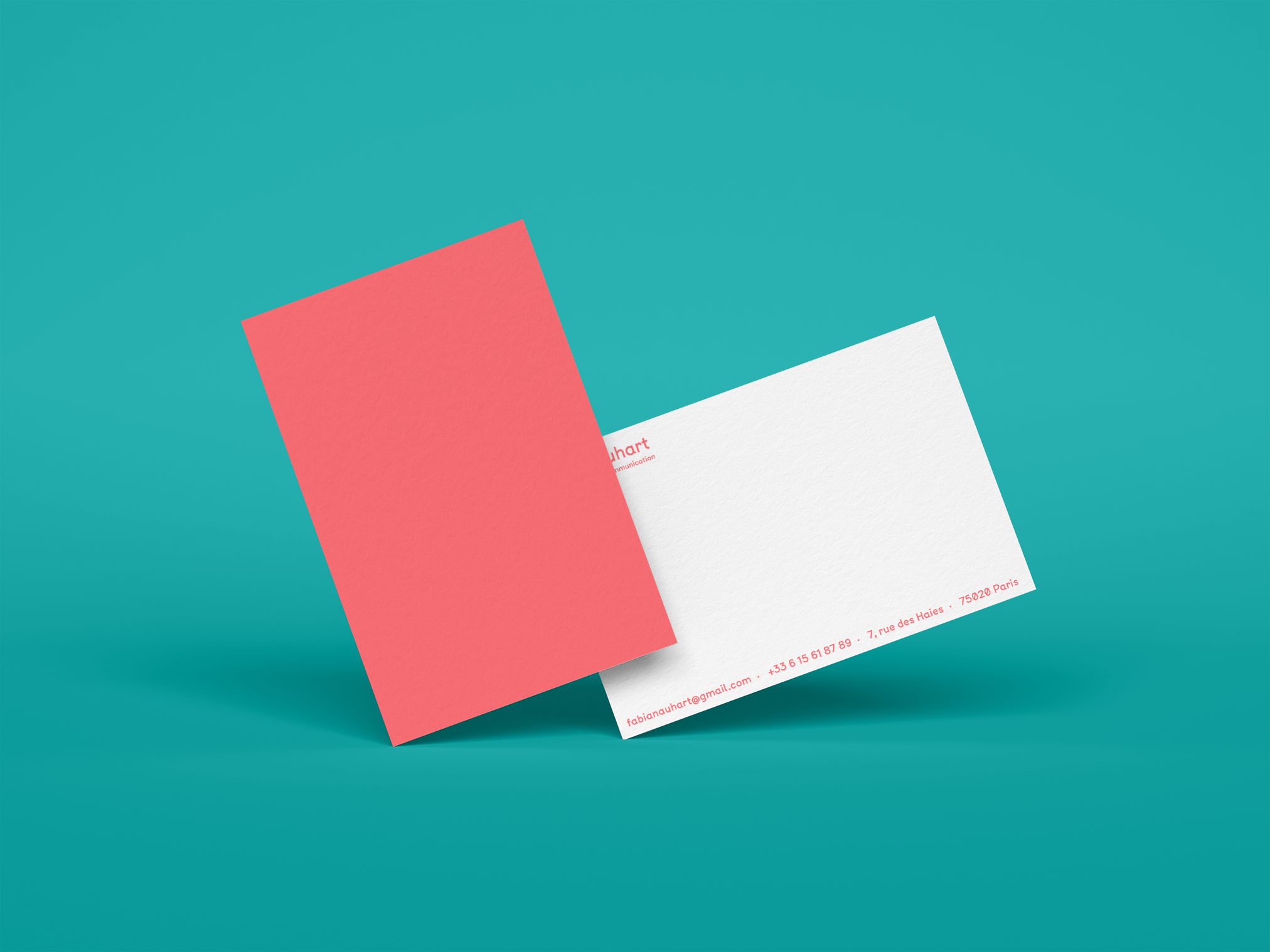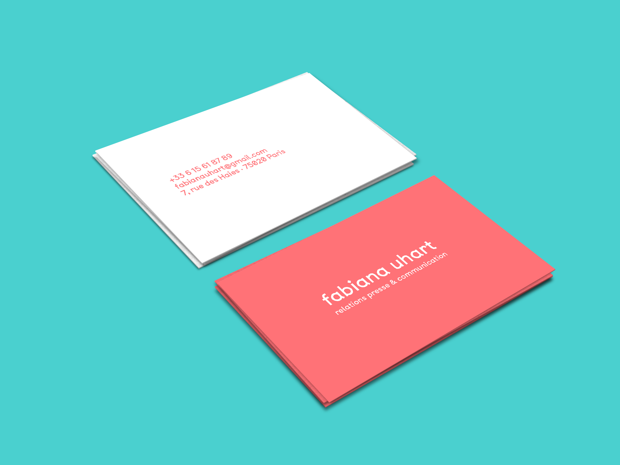 Création de l’ensemble de papeterie de Fabiana Uhart, attachée de presse. Imprimé en pantone fluo.