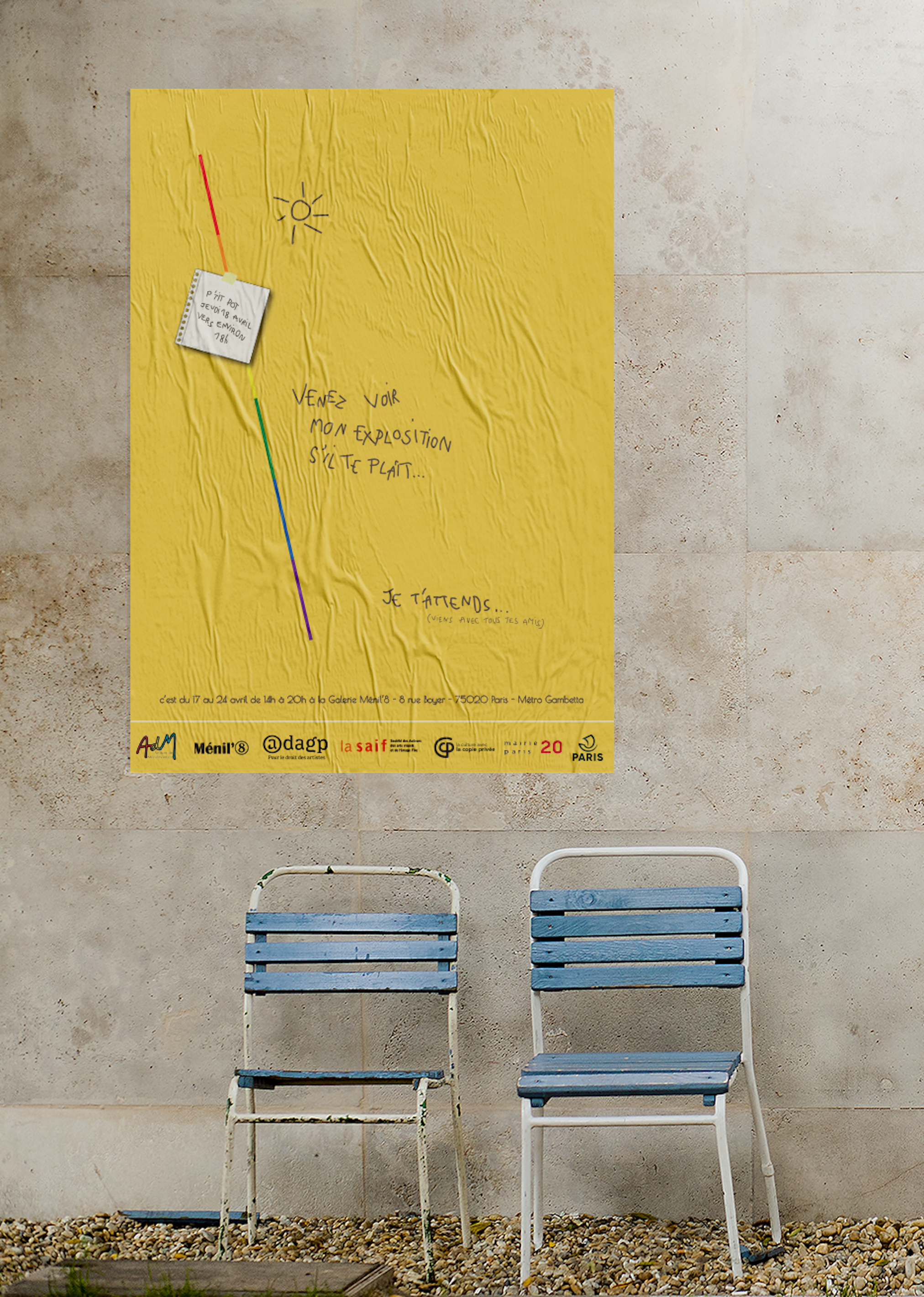 Réalisation du matériel de communication pour une exposition de dessins à la Galerie Ménil’8 - Paris Artiste : Orély