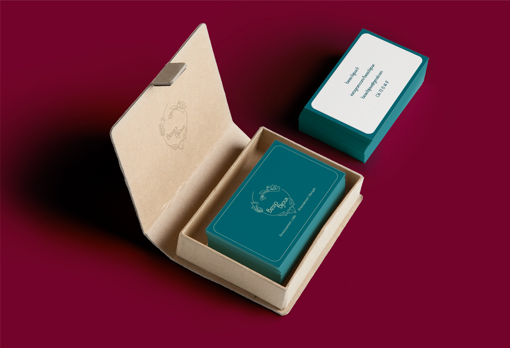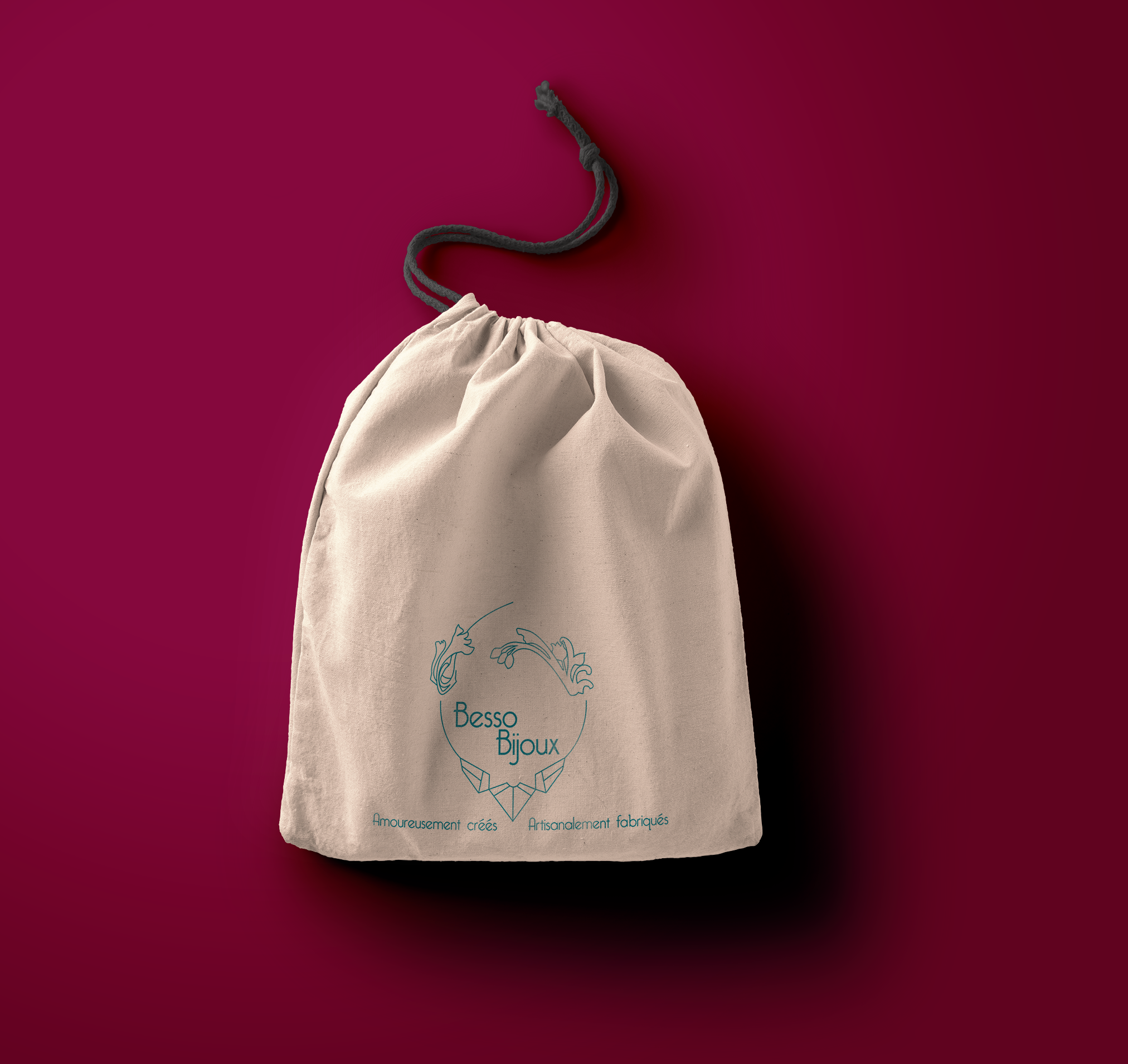 Création de l’identité visuelle. Besso Bijoux est un créateur de bijoux d’inspiration Arts Déco dont la collection est dessinée et fabriquée artisanalement.