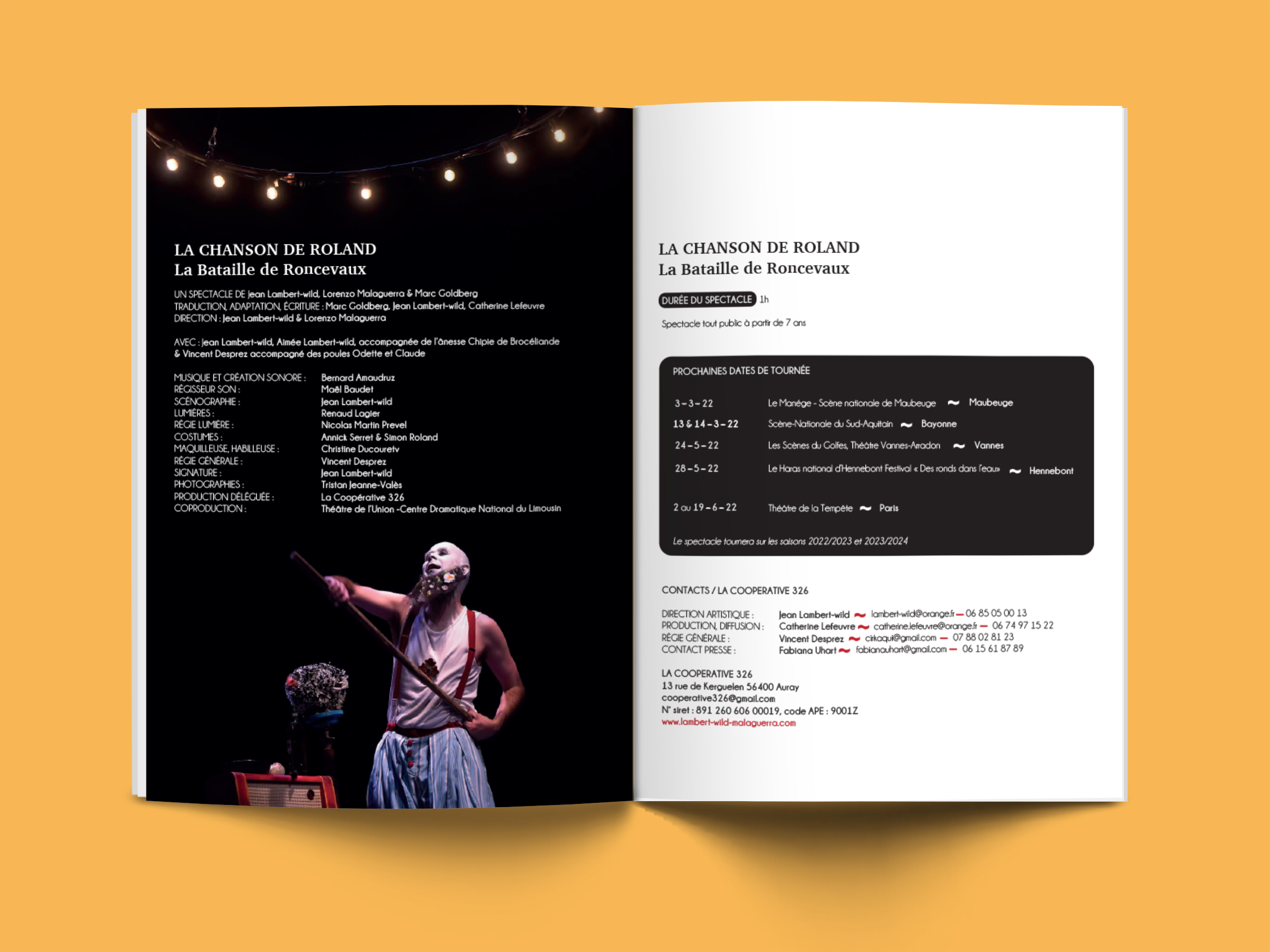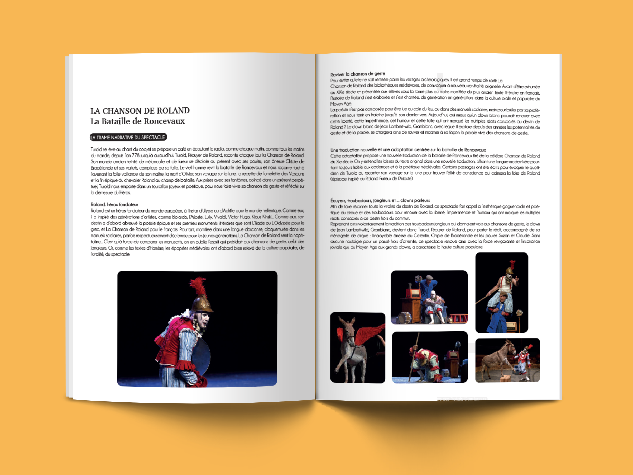 Mise en page du dossier de presse de La Chanson de Roland - la Bataille de Roncevaux, spectacle de Jean-Lambert wild, Lorenzo Malaguerra et Marc Goldberg.